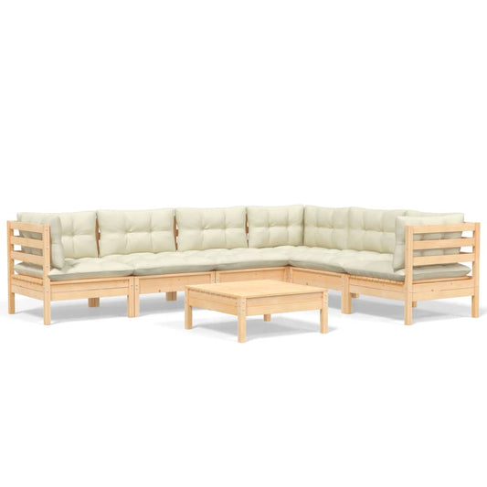 Set Divani da Giardino 8 pz con Cuscini Crema in Massello di Pino