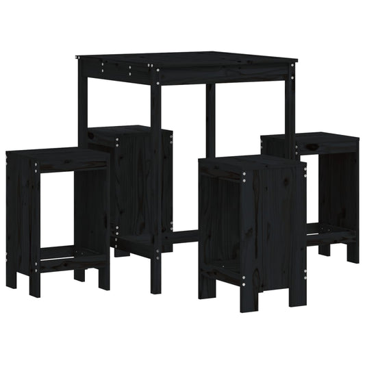 Set Bar da Giardino 5 pz Nero in Legno Massello di Pino