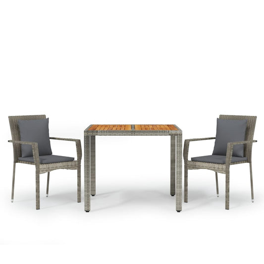 Set da Bistrò 3 pz con Cuscini Grigio in Polyrattan