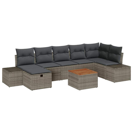 Set Divano da Giardino con cuscino 8 pcs Grigio polyrattan