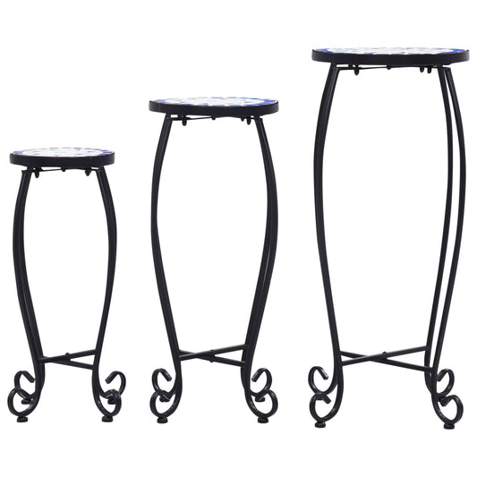 Tavolini con Mosaico 3 pz Blu e Bianco in Ceramica