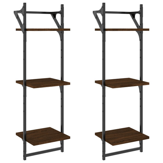 Mensole Muro con Aste 3 Livelli 2pz Rovere Marrone 30x25x100cm