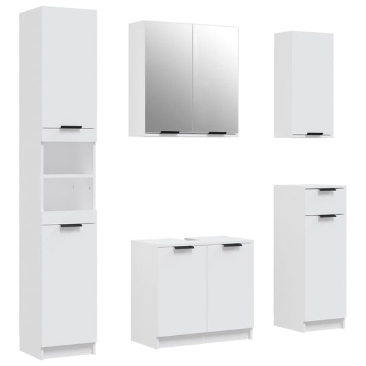 Set di Mobili da Bagno 5 pz Bianco in Legno Multistrato
