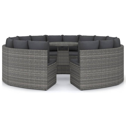 Set Divani da Giardino 9 pz con Cuscini in Polyrattan Grigio