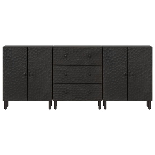 Credenze 3 pz Nero 60x33x75 cm in Legno Massello di Mango
