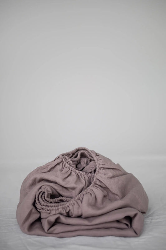 Lenzuolo sotto con angoli in lino in Rosy Brown