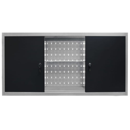 Armadio a Parete Stile Industriale in Metallo Grigio Nero