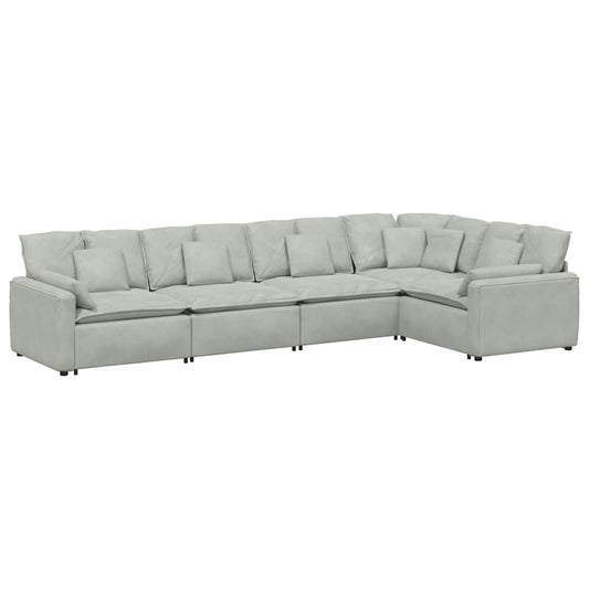 Divano Modulare con Cuscini in Velluto Grigio Chiaro