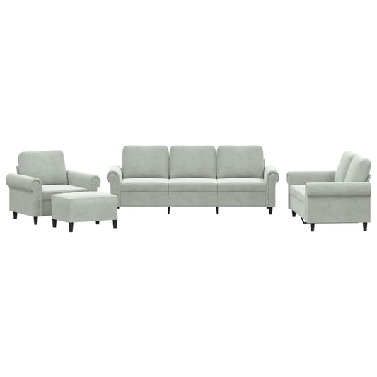 Set di Divani 4 pz Grigio Chiaro in Velluto