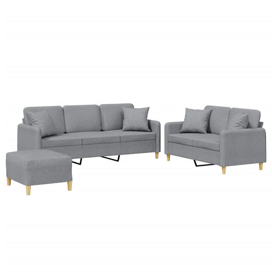 Set Divani 3 pz con Cuscini Grigio Chiaro in Tessuto