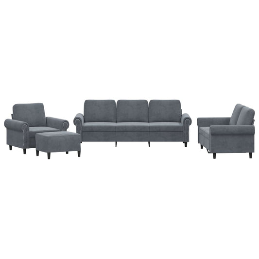 Set di Divani 4 pz con Cuscini Grigio Scuro in Velluto