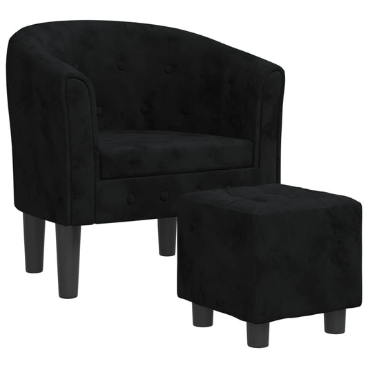 Poltrona Cabriolet con Poggiapiedi Nera in Velluto