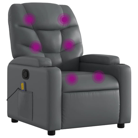 Poltrona Massaggiante Reclinabile Grigia in Similpelle