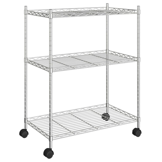 Scaffale a 3 Livelli con Ruote 60x35x81 cm Cromato 150 kg