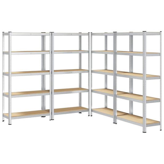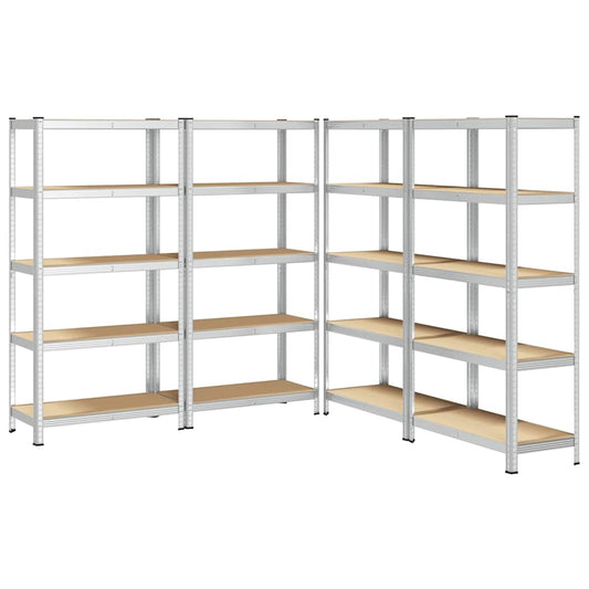Scaffali Resistenti 5 Ripiani 4pz Argento Acciaio e Multistrato