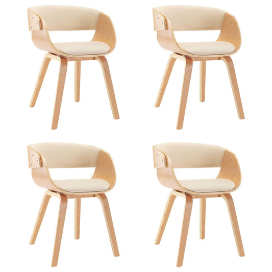 Sedie da Pranzo 4 pz in Legno Curvato e Similpelle Crema