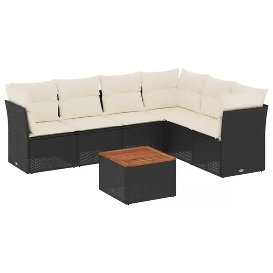 Set Divani da Giardino con Cuscini 7pz Nero Polyrattan
