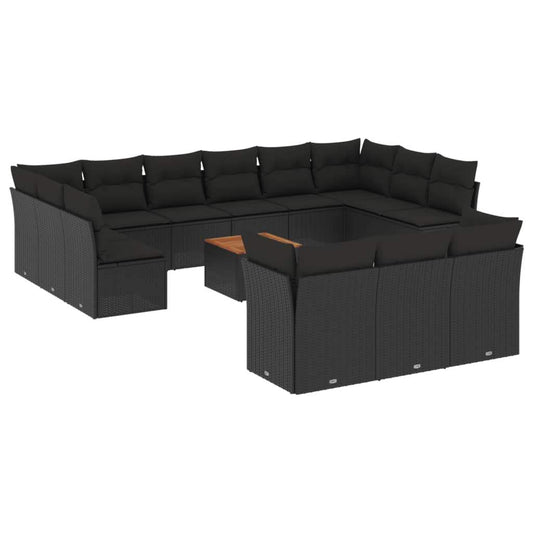 Set Divani da Giardino 13pz con Cuscini Nero in Polyrattan