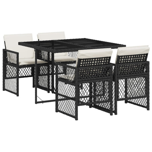 Set da Pranzo da Giardino 5 pz Nero con Cuscini in Polyrattan