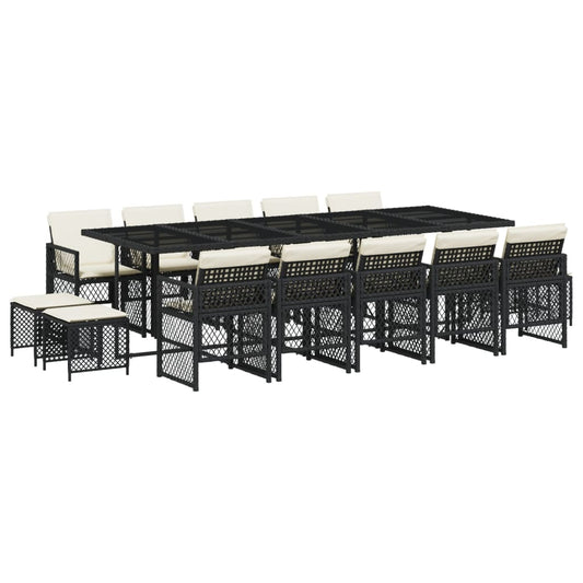 Set da Pranzo da Giardino 15 pz con Cuscini Nero in Polyrattan