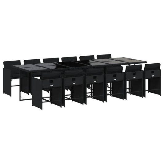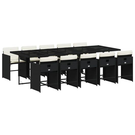 Set da Pranzo da Giardino 13pz con Cuscini Nero in Polyrattan