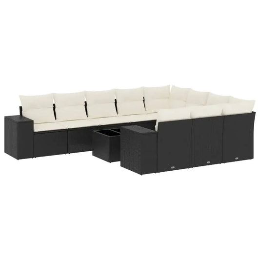 Set Divani da Giardino 11 pz con Cuscini in Polyrattan Nero