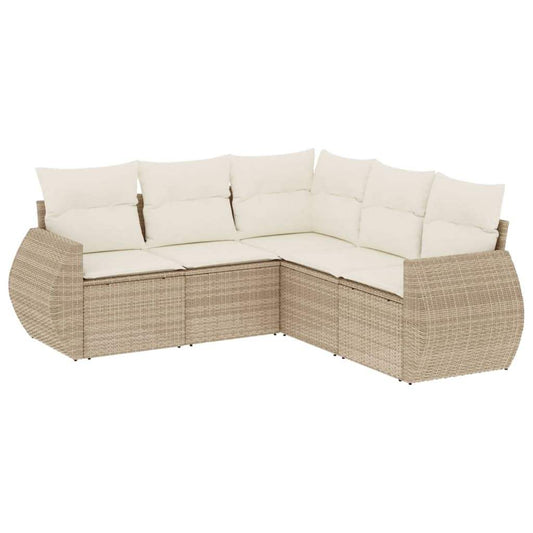 Set Divano da Giardino 5 pz con Cuscini Beige in Polyrattan