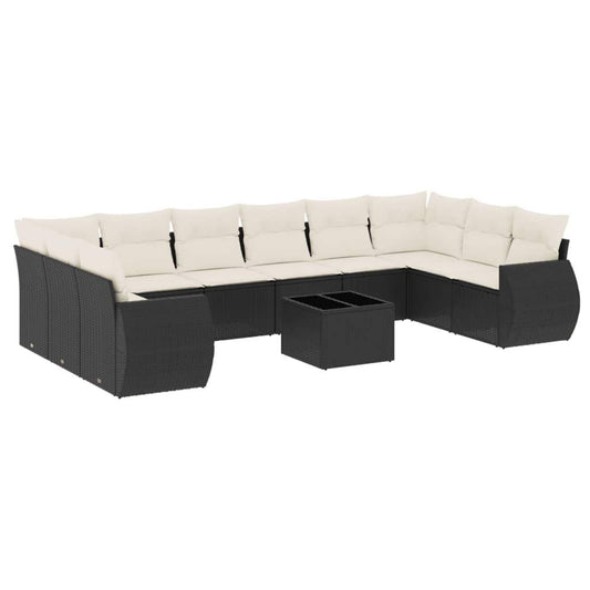 Set Divani da Giardino 11 pz con Cuscini in Polyrattan Nero