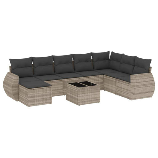 Set Divano da Giardino 9pz con Cuscini Grigio Chiaro Polyrattan