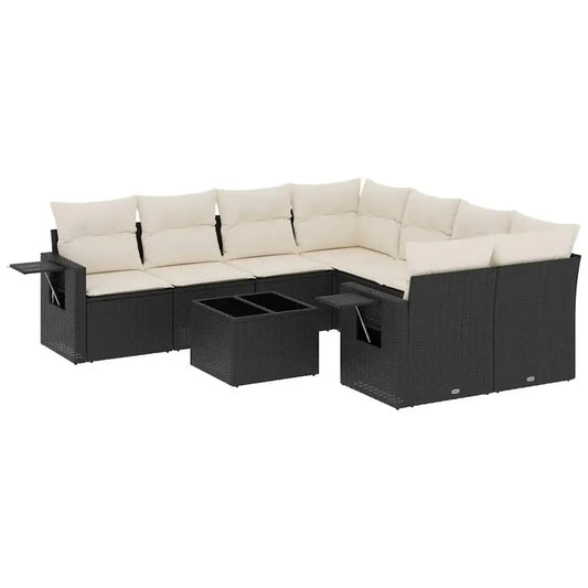 Set Divani da Giardino 9 pz con Cuscini Nero in Polyrattan