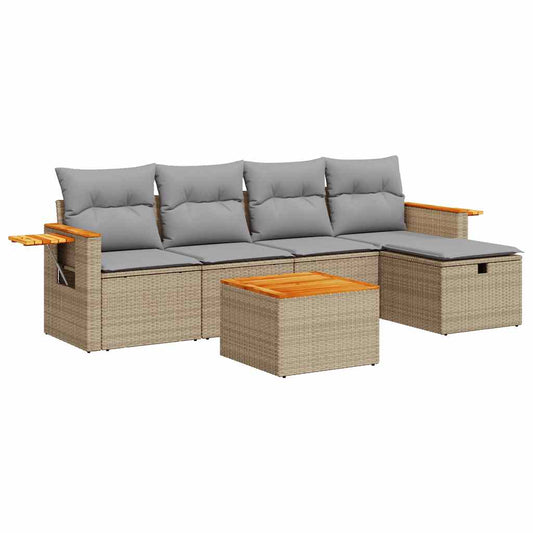 Set Divano da Giardino 6 pz con Cuscini Beige in Polyrattan