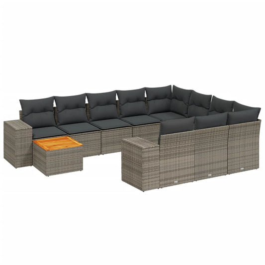 Set Divani da Giardino 11 pz con Cuscini in Polyrattan Grigio