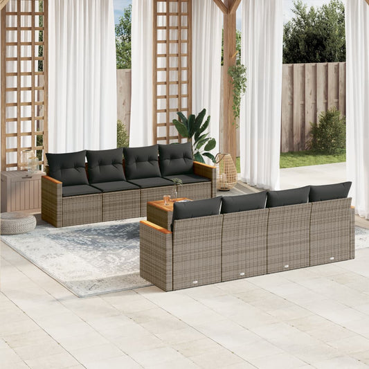 Set Divano da Giardino 9 pz con Cuscini Grigio in Polyrattan