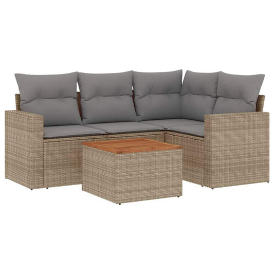 Set Divano da Giardino 5 pz con Cuscini Beige in Polyrattan