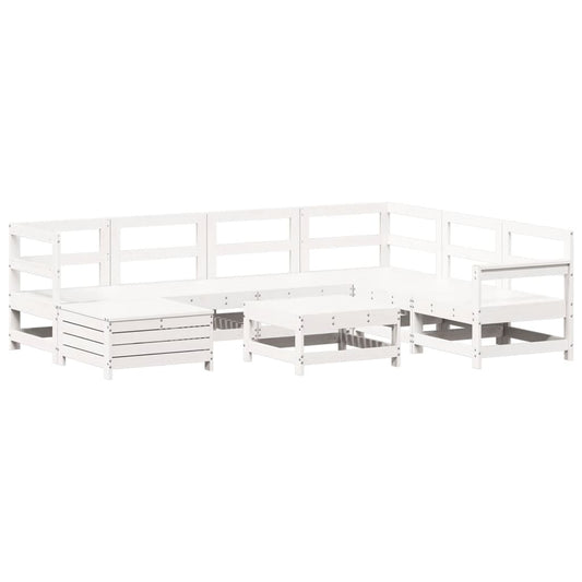 Set Divani da Giardino 8 pz in Legno Massello di Pino Bianco