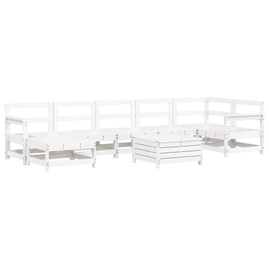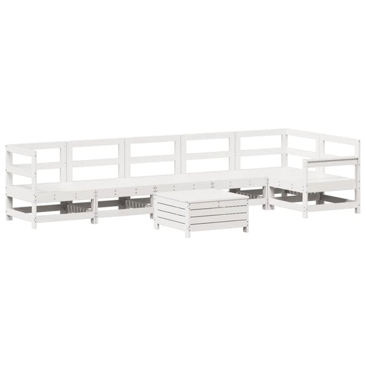 Set Divani da Giardino 7 pz Bianco in Legno Massello di Pino