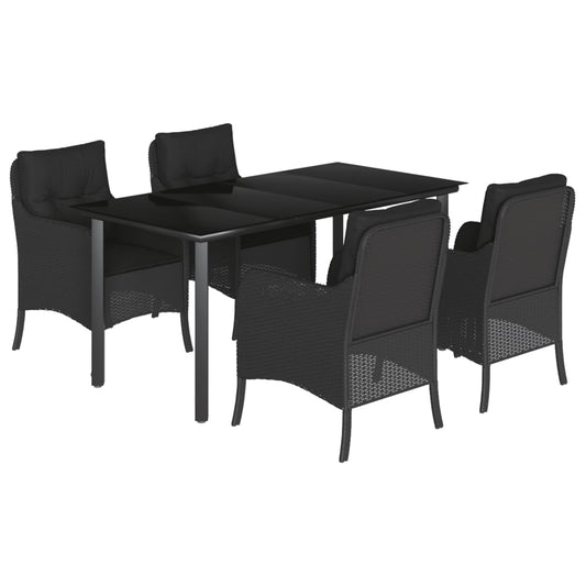 Set da Pranzo da Giardino 5 pz Nero con Cuscini in Polyrattan