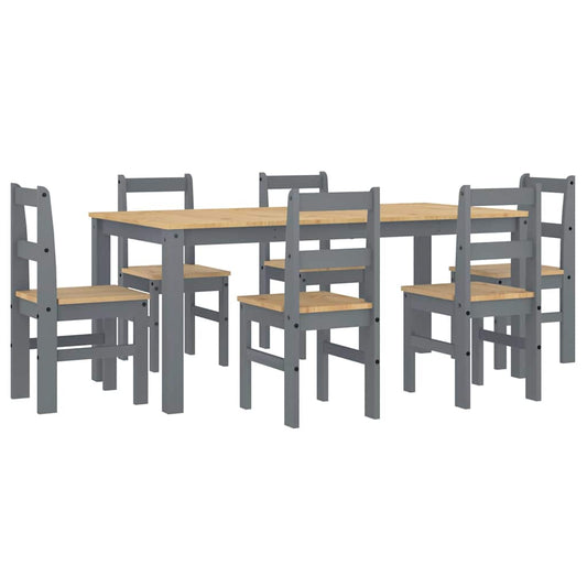Set da Pranzo 7 pz Panama Grigio in Legno Massello di Pino