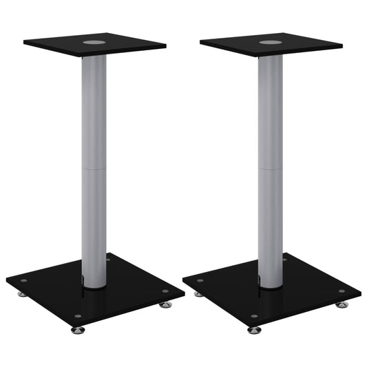 Pedane per Casse 2pz Nero Vetro Temperato Design a 1 Pilastro
