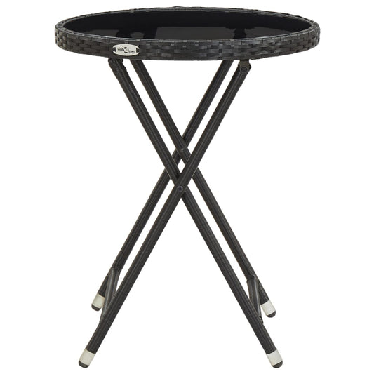 Tavolino da Caffè Nero 60 cm in Polyrattan e Vetro Temperato