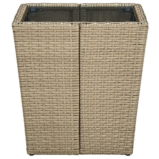 Tavolino Beige 41,5x41,5x44 cm in Polyrattan e Vetro Temperato
