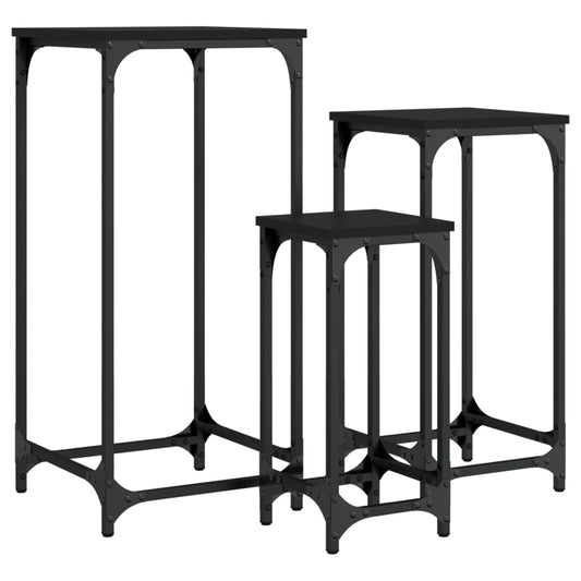 Tavolini Impilabili 3 pz Neri in Legno Multistrato
