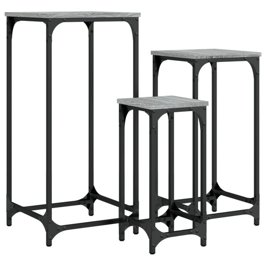 Tavolini Impilabili 3 pz Grigio Sonoma in Legno Multistrato