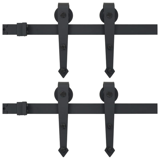 Kit di Binari per Porte Scorrevoli 2 pz 200 cm Acciaio Nero