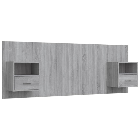 Testiera Letto con Comodini in Legno Multistrato Grigio Sonoma