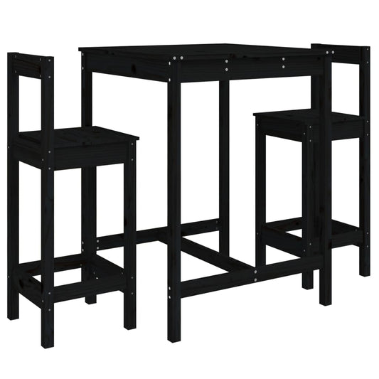Set Bar da Giardino 3 pz Nero in Legno Massello di Pino