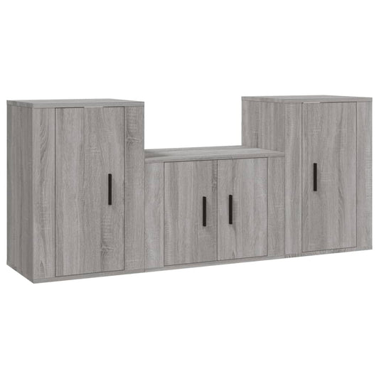 Set Mobili Porta TV 3 pz Grigio Sonoma in Legno Multistrato