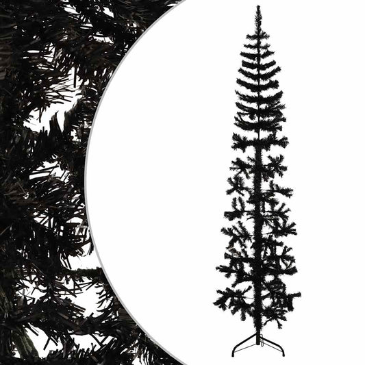 Albero Natale Artificiale Sottile a Metà e Supporto Nero 180 cm