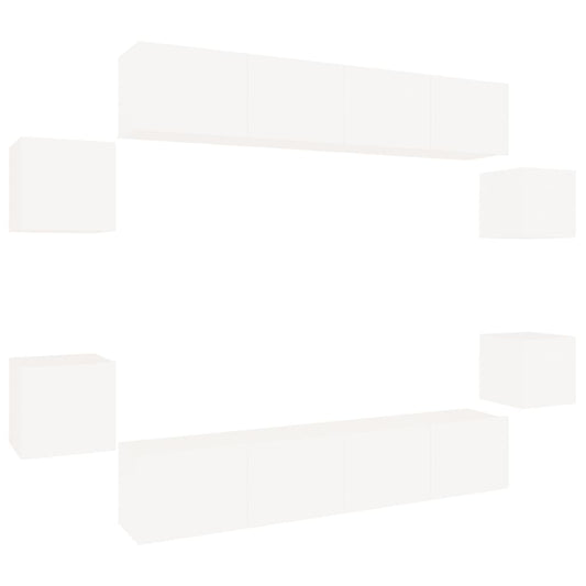 Set Mobili Porta TV 8pz Bianco in Legno Multistrato