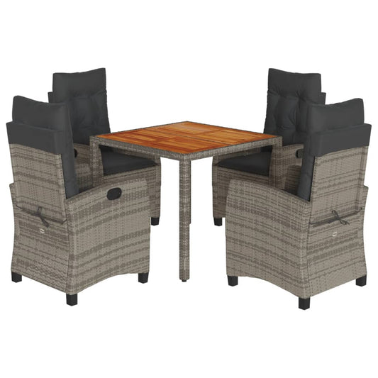Set da Pranzo da Giardino 5 pz con Cuscini in Polyrattan Grigio